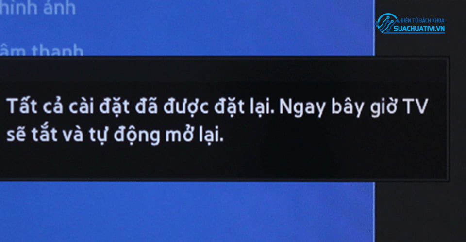 Tiếp theo, tivi sẽ thực hiện quá trình khôi phục cài đặt mặc định như ban đầu như hình bên dưới.
