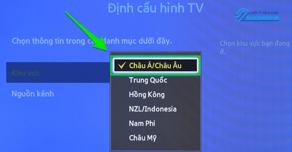 Bước 8: Chọn khu vực là Châu Á/Châu Âu.