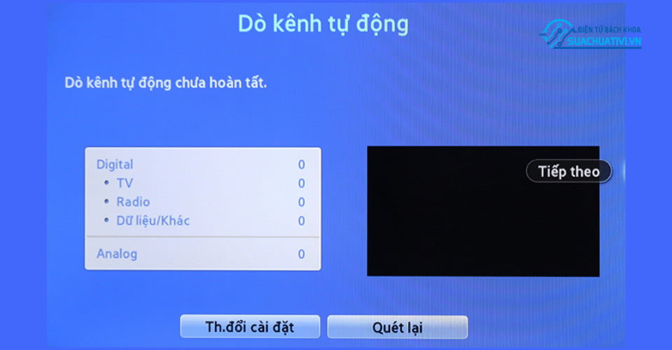 Trong quá trình thiết lập lại hệ thống, KHÔNG tắt tivi hay rút điện vì có thể bị đơ máy. Nếu đã lỡ tắt, bạn chờ khoảng 15 phút rồi bật lại và thao tác lại từ đầu các bước trên.