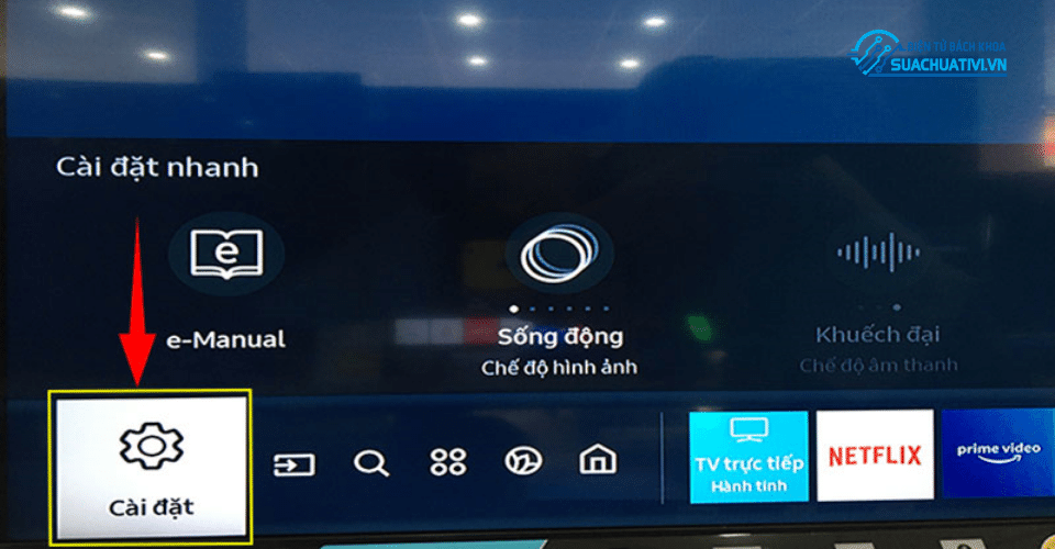 Bước 2: Nhấn vào Cài đặt (Settings) của menu trên giao diện màn hình tivi.